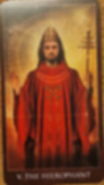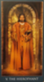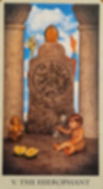 Also known as the Pope, the Hierophant is a spiritual guide, a point of contact between the human and divine. He acts as mediator and translator. While the High Priestess jeaously guards the secret knowledge that she possess, the Hierophant brings life's mysteries to the people. In every day life, the Pope (as the Hierophant is known in some decks) is a guide, teacher or mentor, a person whi provides a moral reference. Transmitting knowledge, wisdom and counsel, he is guardian and guarantor of the dogmas of tradition, conventions and habits.