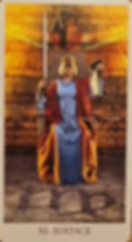(Numbered VIII) Justice, harmony, equilibrium, equity, discipline, order, legal questions. Justice invites the Querent to reflect and judge.