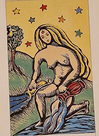 Jugs - The female figure pours water into the pool and onto the earth, indicating 'as above, so below'.