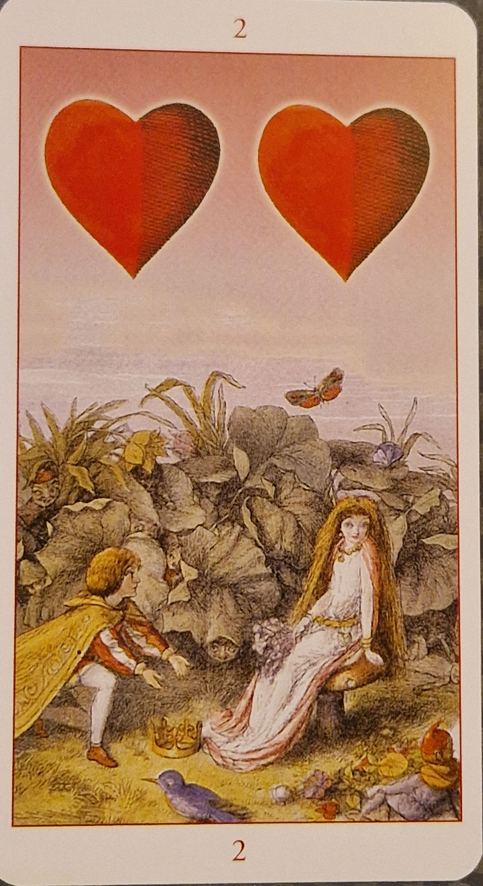 For example, you won't find the usual Cups, Pentacles, Wands and Swords. Instead, the Fairy Tarot is divided into Hearts, Bells, Acorns and Leaves. Likewise several of the Major Arcana are different, with examples including the Elf, who stands in for the Fool, and the Troll, who represents the Devil.